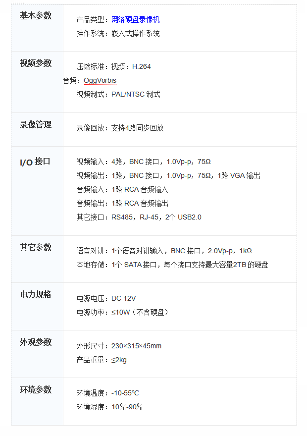 4路硬盘录像机DS-7804H-SN